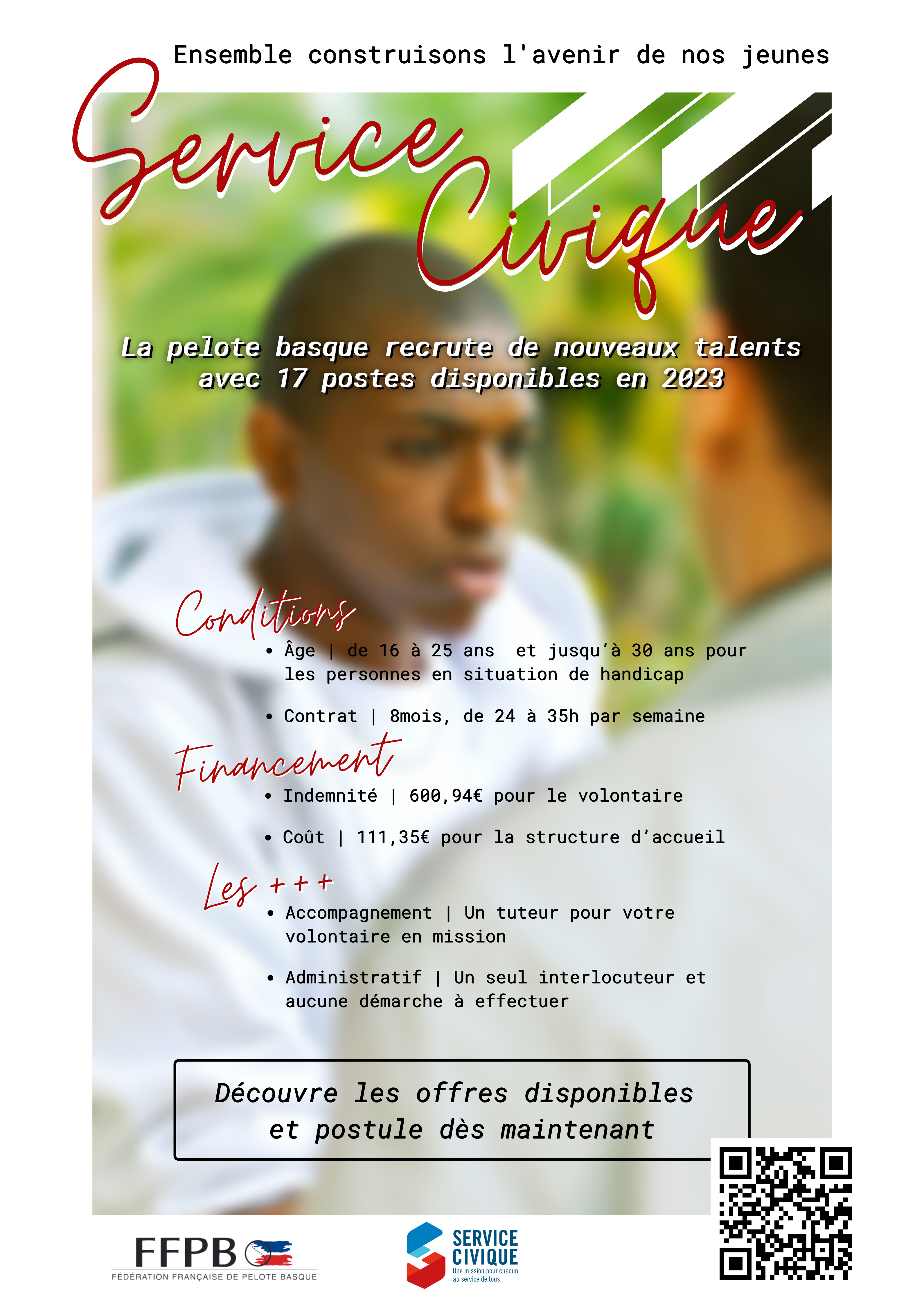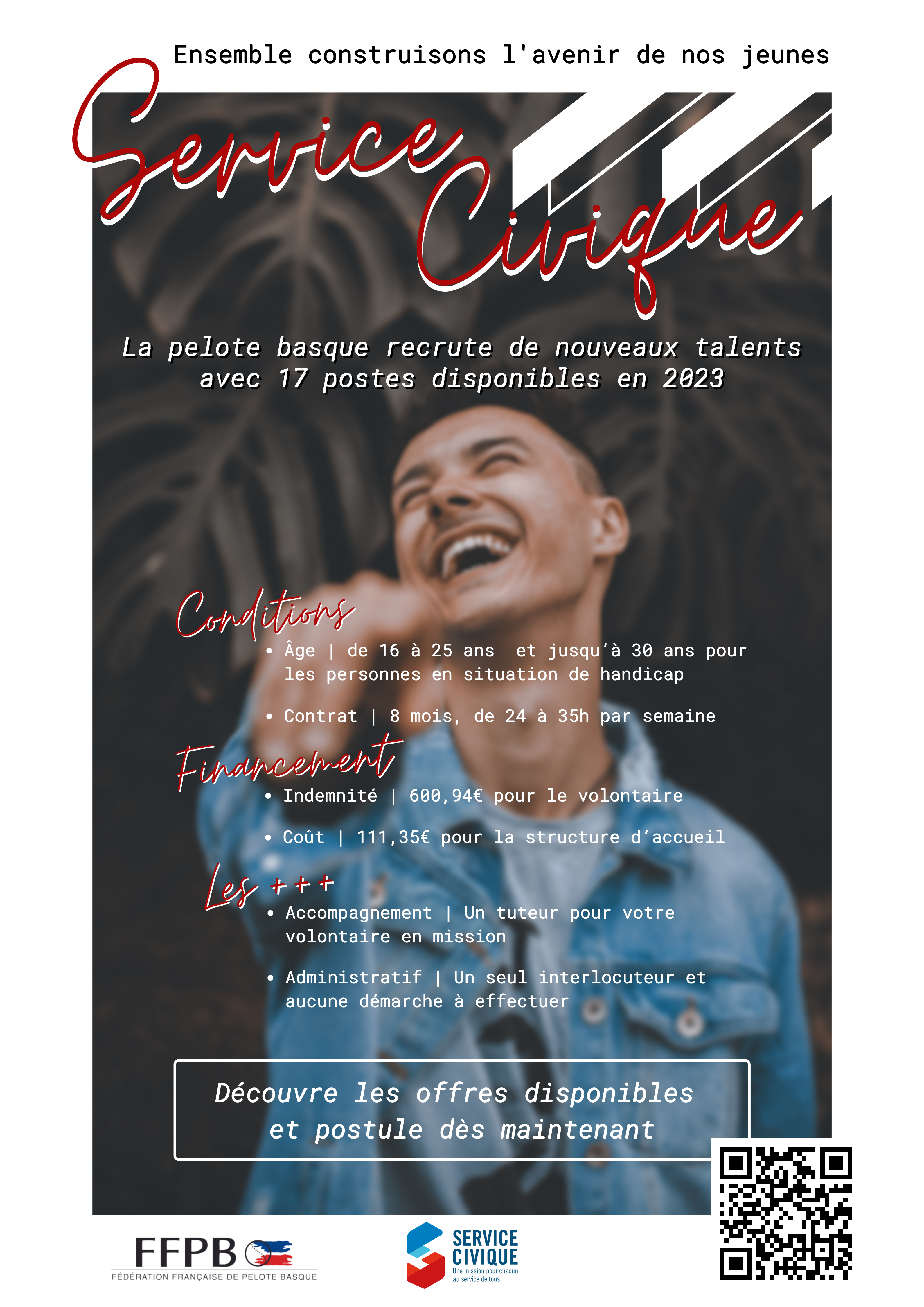 La Fédération Française de Pelote Basque bénéficie depuis le 26 octobre 2022 et pour une durée de 3 ans, de l’agrément national de service civique.